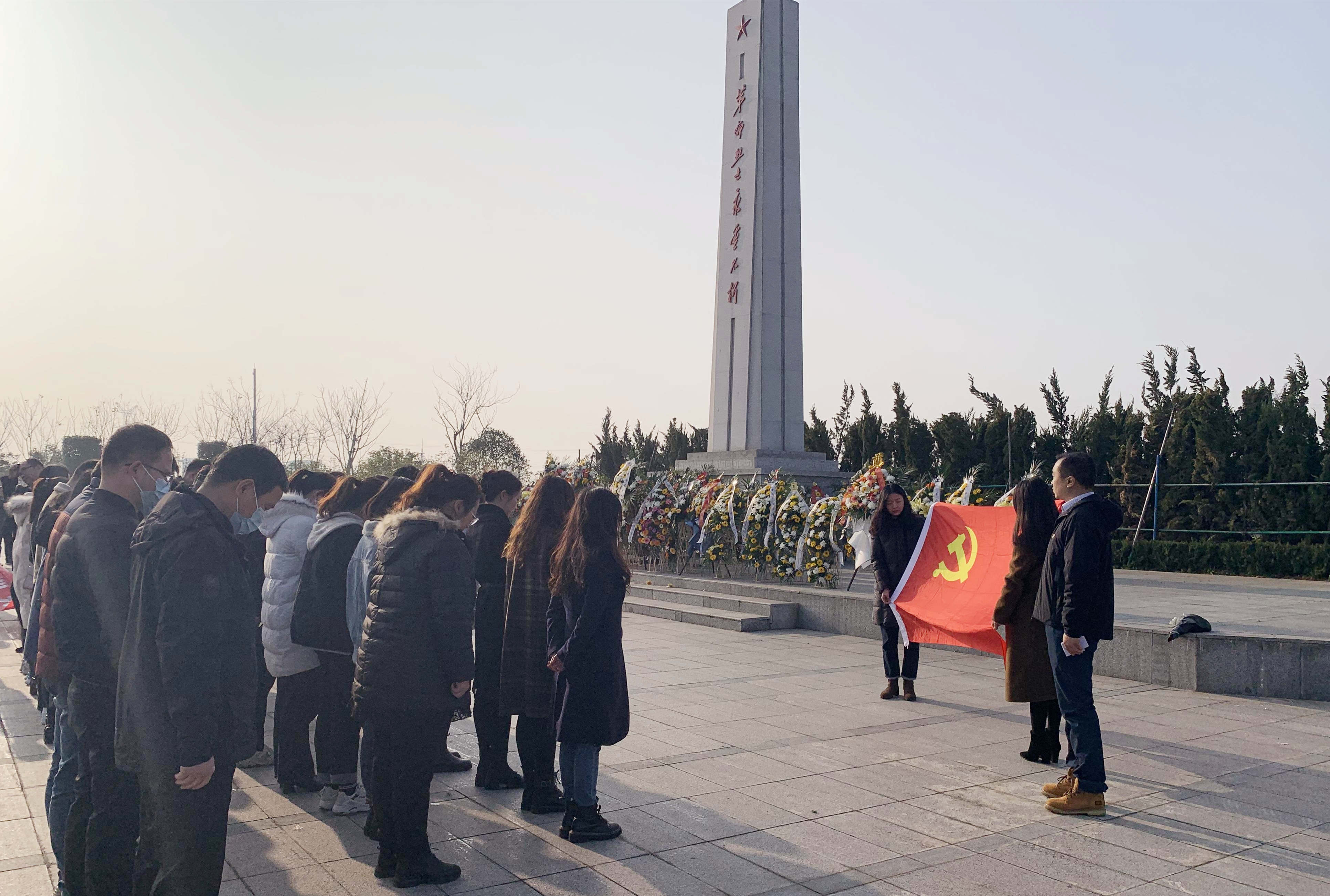 在革命烈士紀念碑前,黨員代表敬獻花籃,全體人員低頭默哀致敬,表達對受難同胞的哀思和對烈士的敬仰。面對鮮紅黨旗,全體人員重溫入黨誓詞,銘記作為一名共產(chǎn)黨員所肩負的責任和使命。